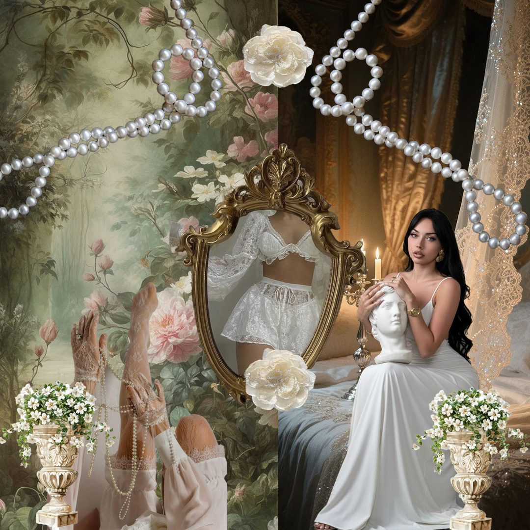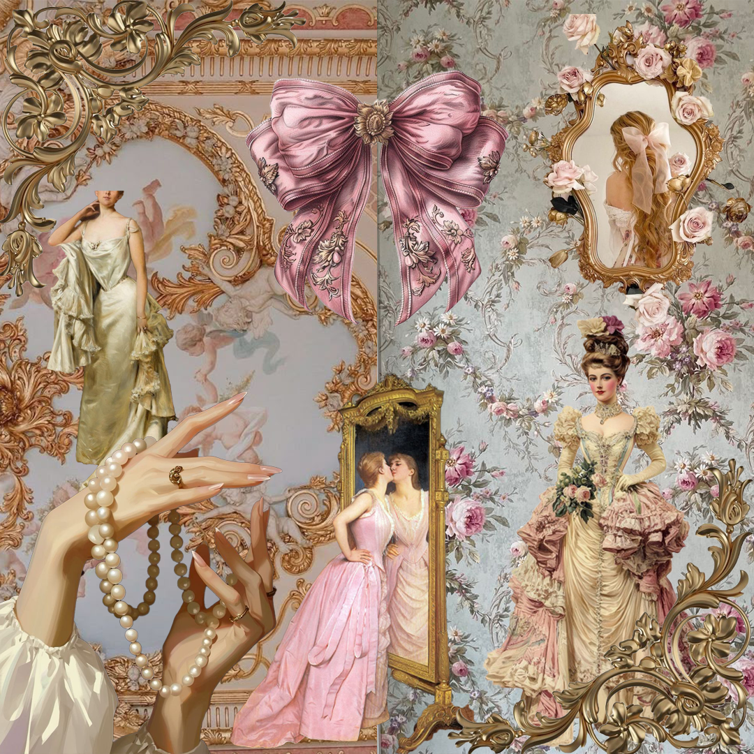 Esta investigación me llevó a conectar el Rococó con tendencias actuales como el Soft Historical, que reinterpreta lo romántico y lo ornamental desde una mirada moderna.